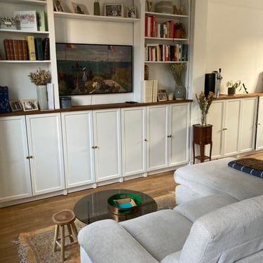 Pour répondre aux contraintes de certaines pièces étroites, nous avons conçu des aménagements sur mesure. Ces meubles à faible profondeur ont été pensés pour maximiser le rangement sans empiéter sur la circulation, optimisant ainsi chaque mètre carré de manière fonctionnelle.